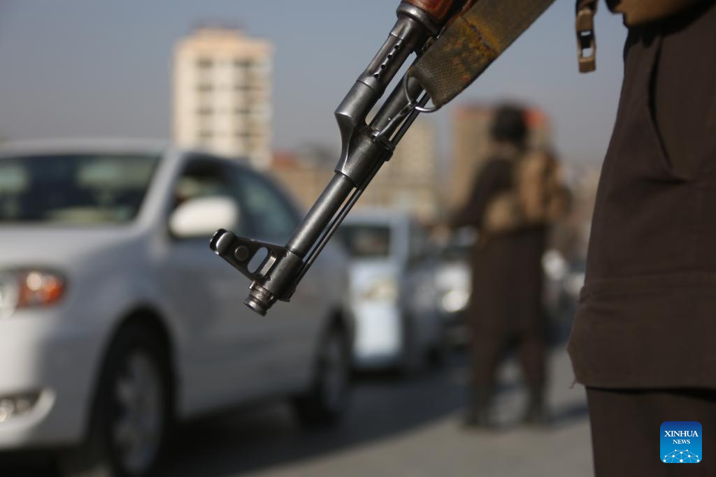 Security personnel stand guard at a road junction following airstrikes in Kabul, Afghanistan, Feb. 27, 2026. At least 19 people were killed and 26 others injured in the eastern provinces of Khost and Paktika in Afghanistan following Afghanistan-Pakistan border clashes, Hamdullah Fitrat, deputy spokesman for the Afghan government, said Friday on X. (Photo by Saifurahman Safi/Xinhua)