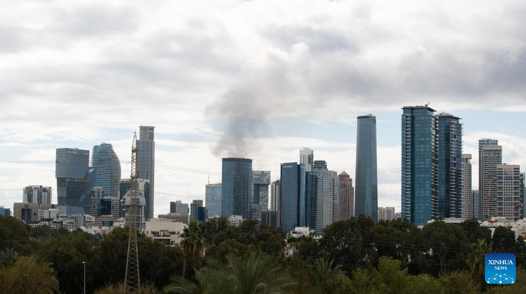 This photo taken on Feb. 28, 2026 shows thick smoke rising in Tel Aviv, Israel. (Xinhua/Chen Junqing)