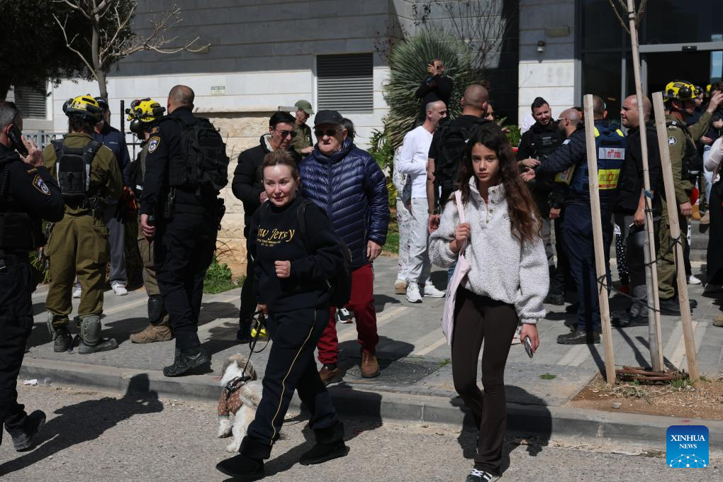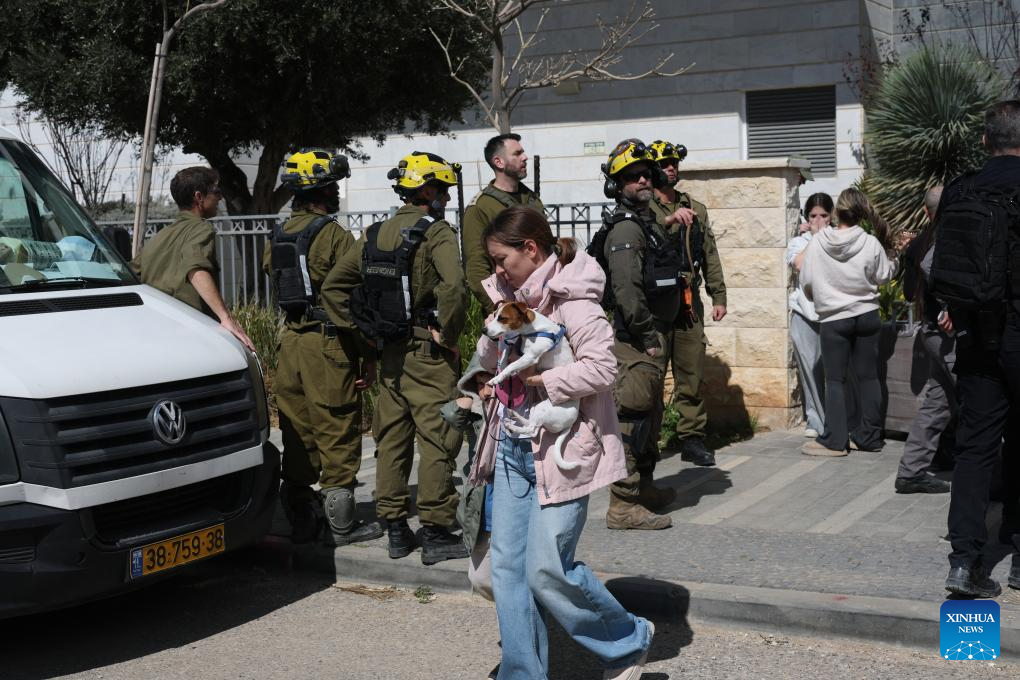 The Israel Defense Forces' Home Front Command issued civil defense directives as air raid sirens sounded in multiple areas nationwide, urging residents to take shelter. (JINI via Xinhua)