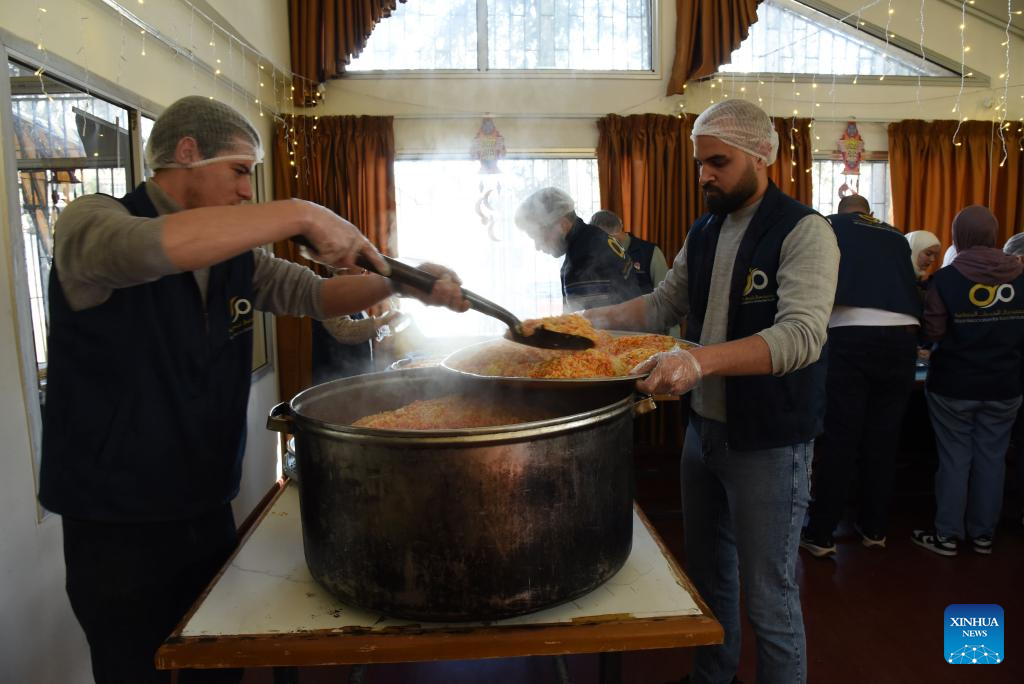 DAMASCUS, Feb. 27 (Xinhua) -- In the Mazzeh neighborhood of Damascus, the kitchen still stands. The pots are still scrubbed clean. The volunteers, young and determined, still arrive each morning. But the quiet hum of activity that fills the room masks a sobering reality: this year, the pots are smaller, the portions fewer, and the silence of shuttered community kitchens across the city echoes louder than the call to prayer.
