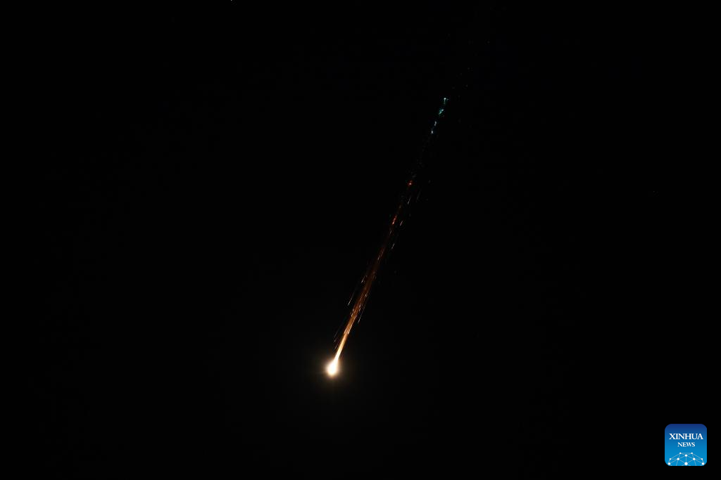 Missile debris falls after Israeli air defense systems launched interceptor missiles over Tel Aviv, Israel, Feb. 28, 2026. The United States and Israel on Saturday launched "major combat operations" against Iran, plunging the war-torn Middle East into a new round of violent conflicts.