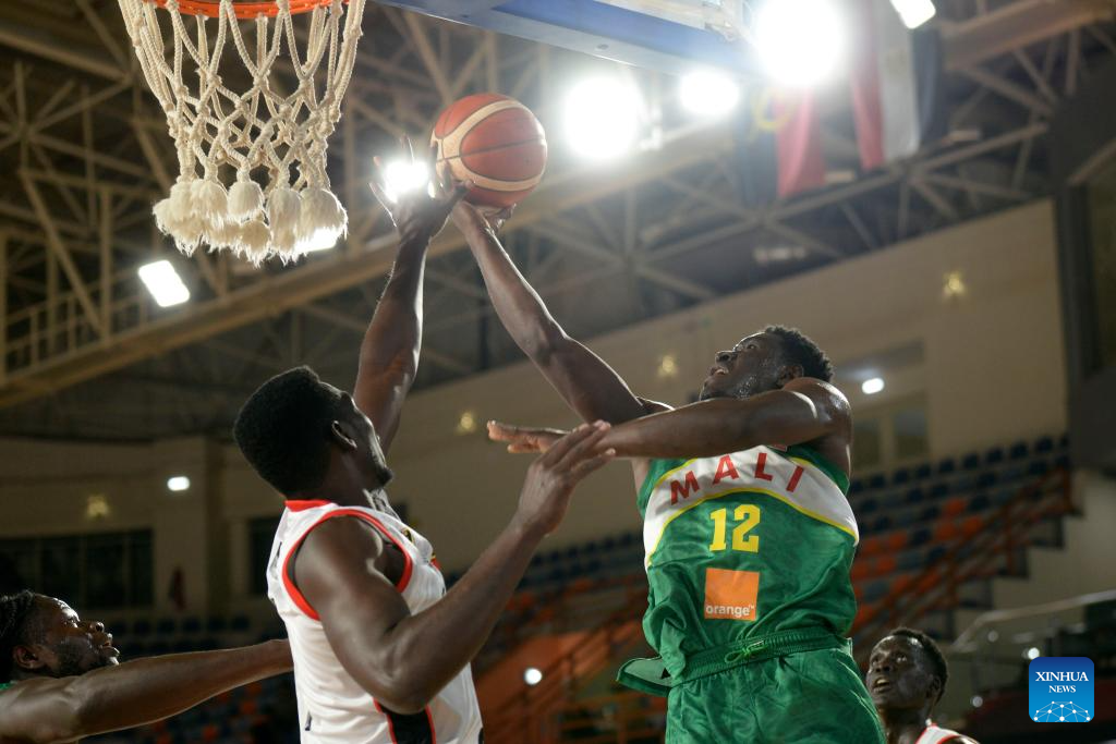 Mahamane Coulibaly (R) of Mali goes for a layup during the FIBA Basketball World Cup 2027 African Qualifiers Group D match between Uganda and Mali in Alexandria, Egypt, Feb.28 2026. (Xinhua/Ahmed Gomaa)