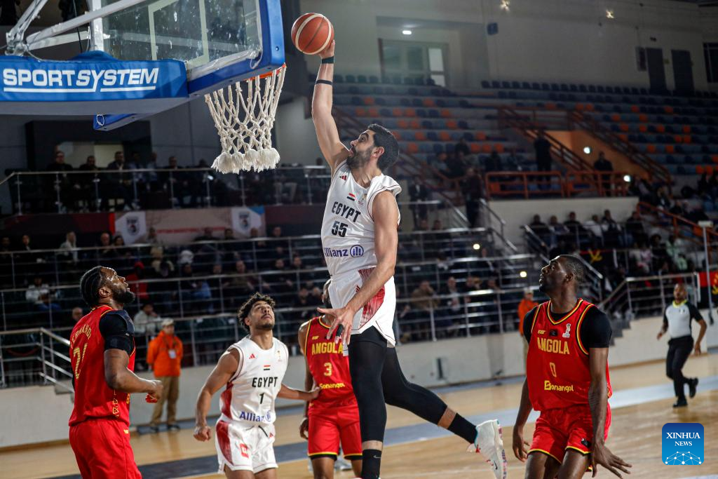 Omar Oraby(C) of Egypt dunks during the FIBA Basketball World Cup 2027 African Qualifiers Group D match between Egypt and Angola in Alexandria, Egypt, Feb. 28 2026. (Xinhua/Ahmed Gomaa)