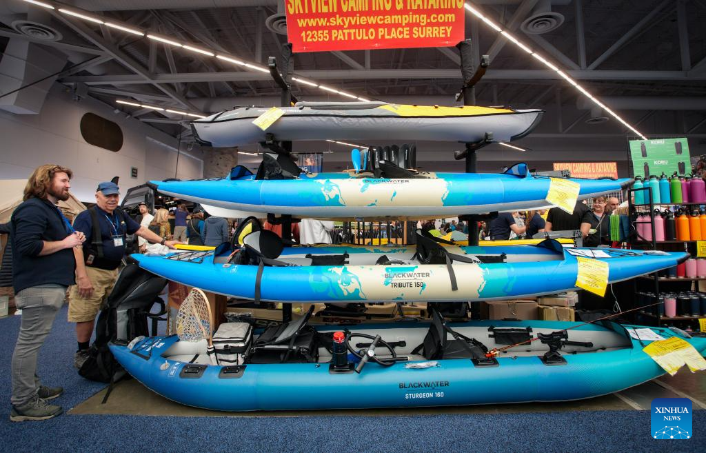 Visitors check out inflatable kayaks at the 2026 Outdoor Adventure and Travel Show in Vancouver, British Columbia, Canada, on Feb. 28, 2026. The two-day annual event kicked off Saturday, with over 250 exhibitors showcasing the latest developments in camping gear, paddle sports equipment, outdoor clothing, scuba diving gear, and adventure travel experiences. (Photo by Liang Sen/Xinhua)