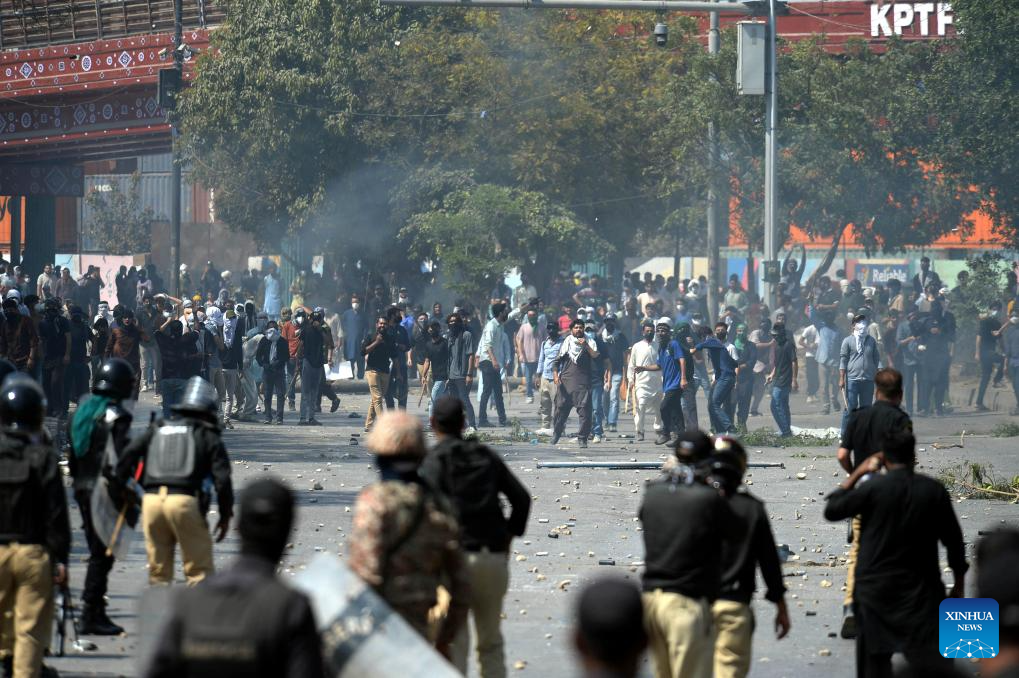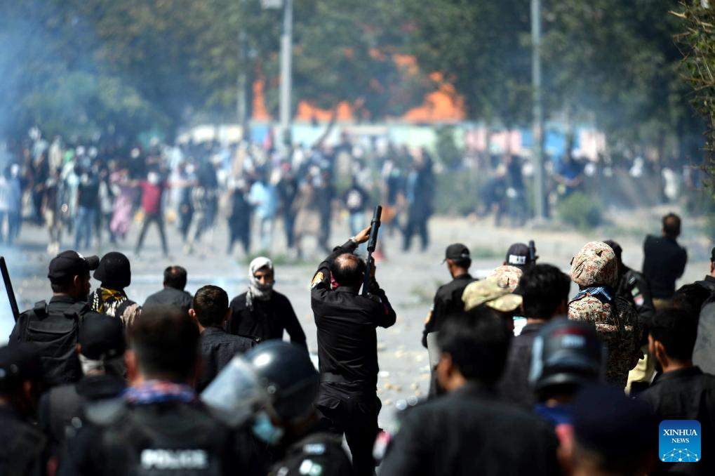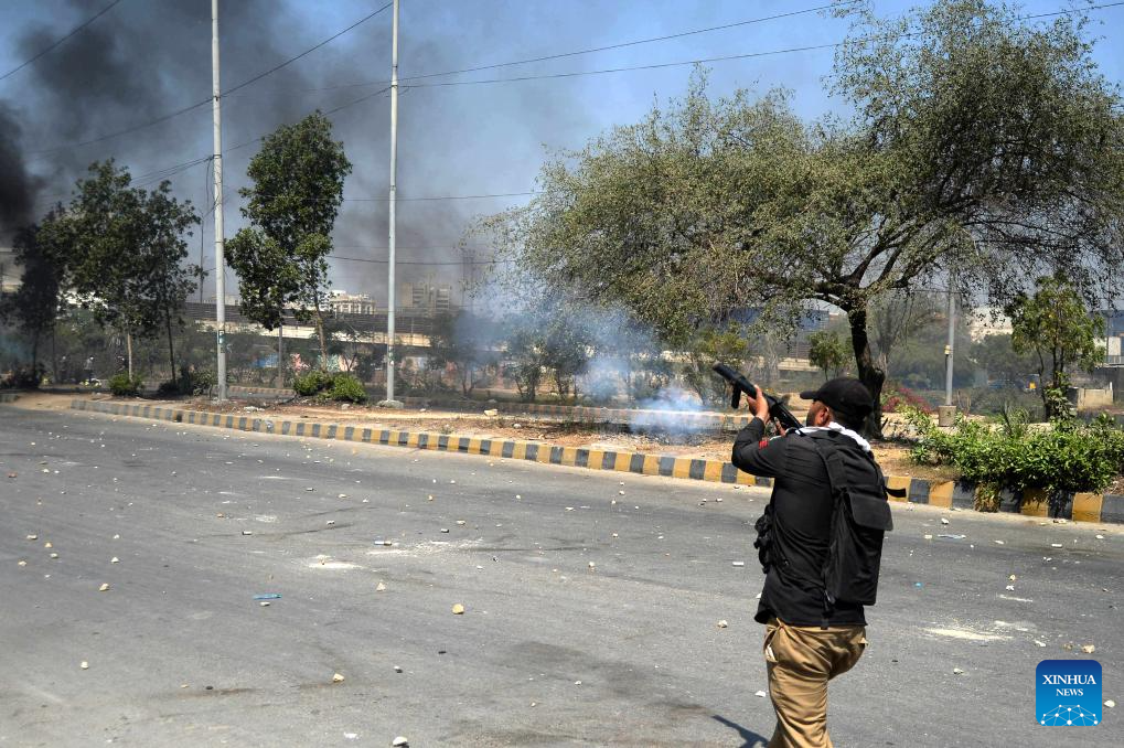 The clashes erupted when demonstrators tried to enter the consulate premises, prompting security forces to respond, according to Rescue 1122 Sindh. (Photo by Imran Ali/Xinhua)