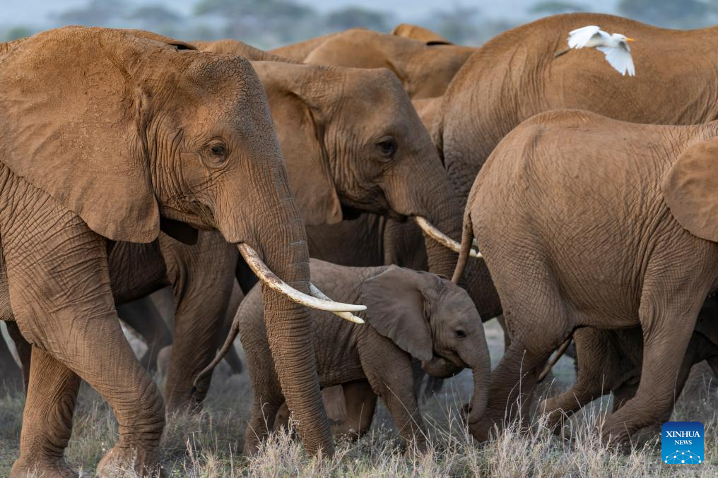 This photo taken on Jan. 8, 2026 shows elephants at the Amboseli National Park in Kajiado County, Kenya.