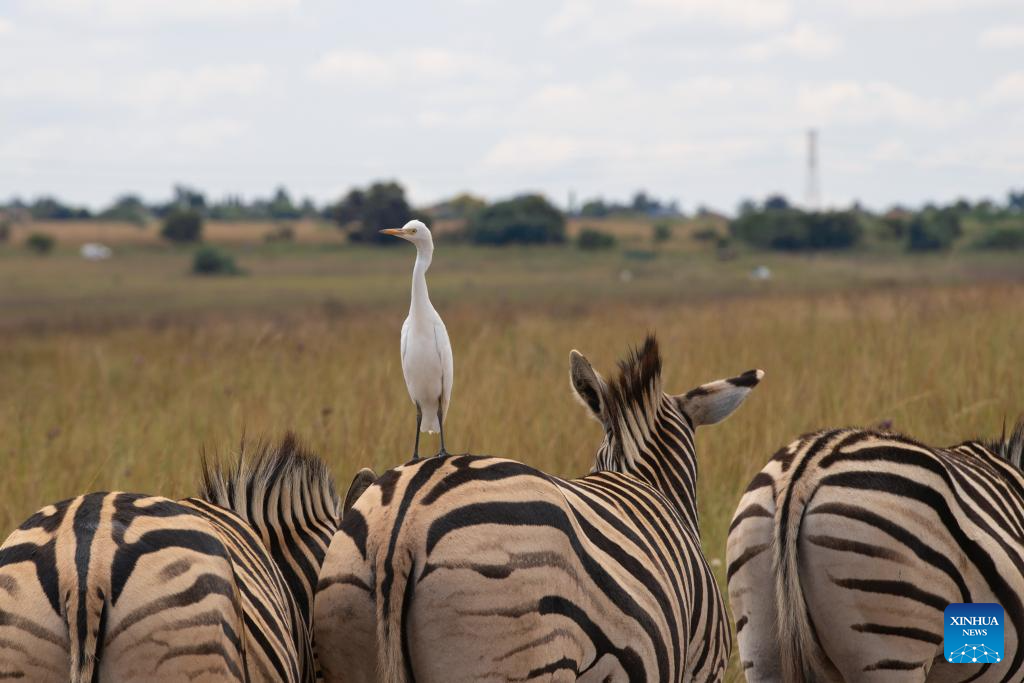An egret rests on a zebra at Rietvlei Nature Reserve in Pretoria, South Africa, Feb. 25, 2026.