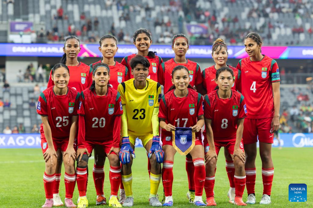 Starting players of Bangladesh line up for photos prior to the Group B match of Women's Asian Cup between China and Bangladesh at Western Sydney Stadium in Sydney, Australia, March 3, 2026. (Photo by Hu Jingchen/Xinhua)