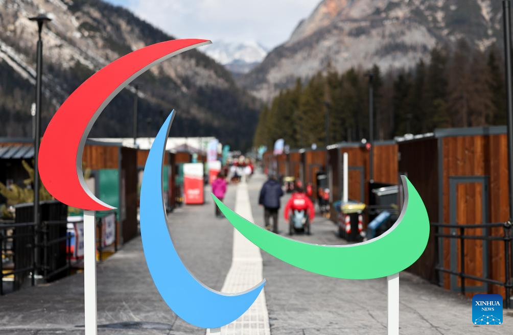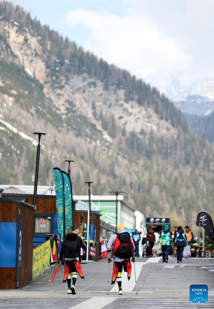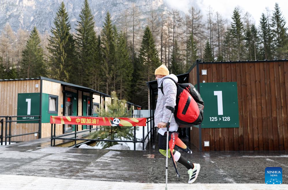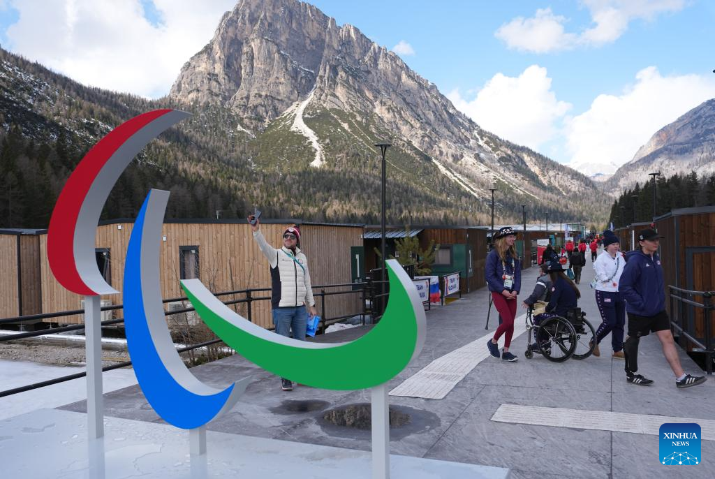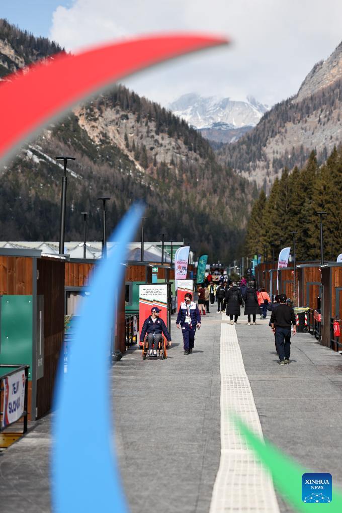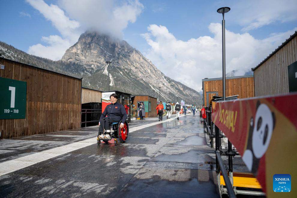 An athlete walks in the Paralympic Village of the Milan-Cortina 2026 Paralympic Winter Games in Cortina d'Ampezzo, Italy, March 3, 2026. (Xinhua/Wang Kaiyan)
