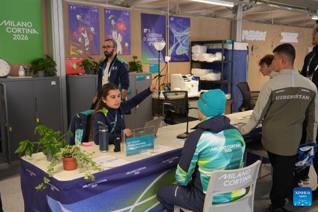 Staff work in the resident centre at the Paralympic Village of the Milan-Cortina 2026 Paralympic Winter Games in Cortina d'Ampezzo, Italy, March 3, 2026. (Xinhua/Cai Yang)