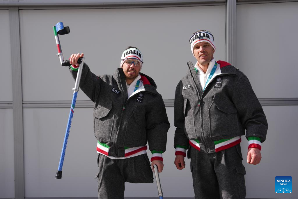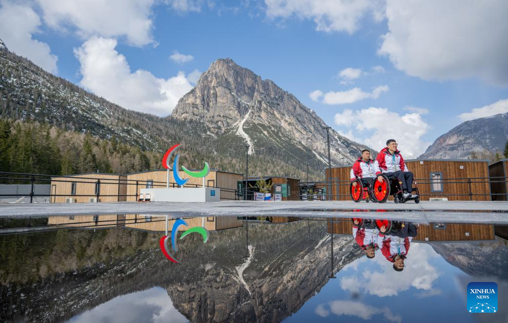 Chen Jianxin (R) and Wang Haitao of China are seen at the Paralympic Village of the Milan-Cortina 2026 Paralympic Winter Games in Cortina d'Ampezzo, Italy, March 3, 2026. (Xinhua/Lian Zhen)