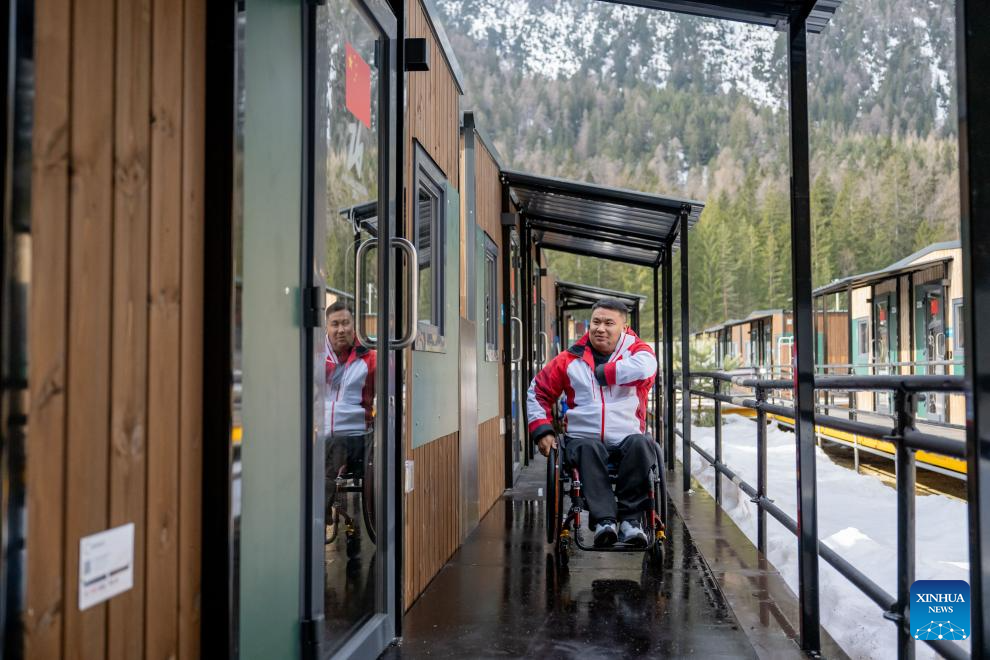 Wang Haitao of China is seen at the Paralympic Village of the Milan-Cortina 2026 Paralympic Winter Games in Cortina d'Ampezzo, Italy, March 3, 2026. (Xinhua/Lian Zhen)