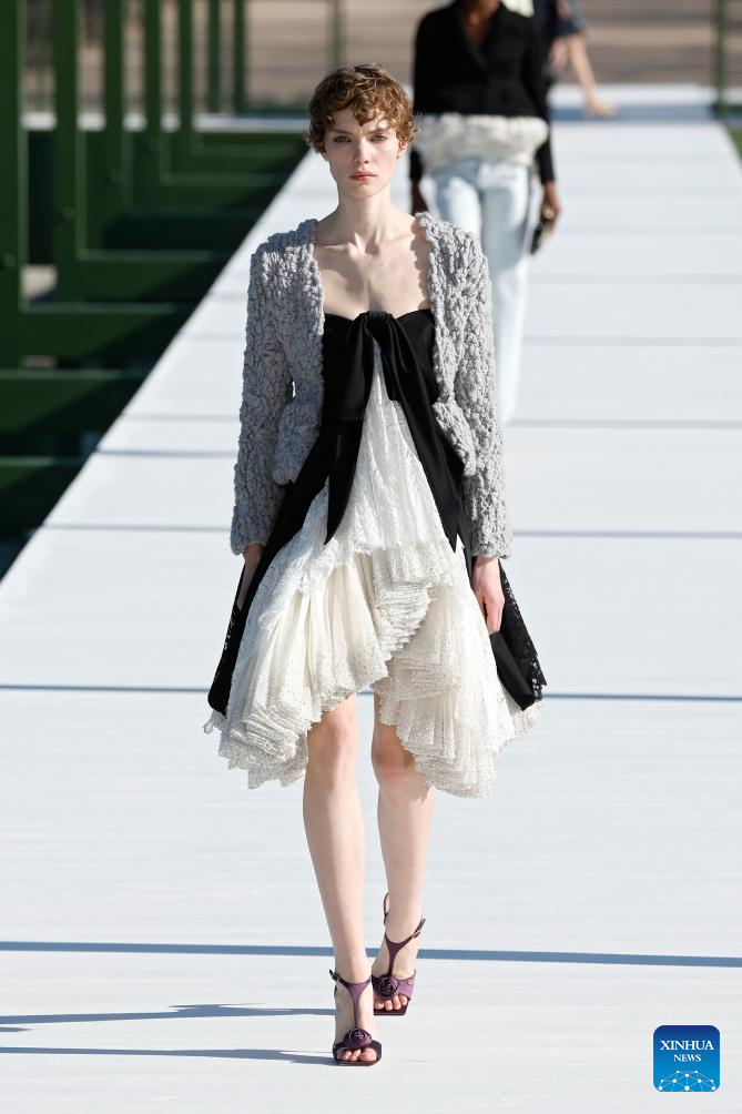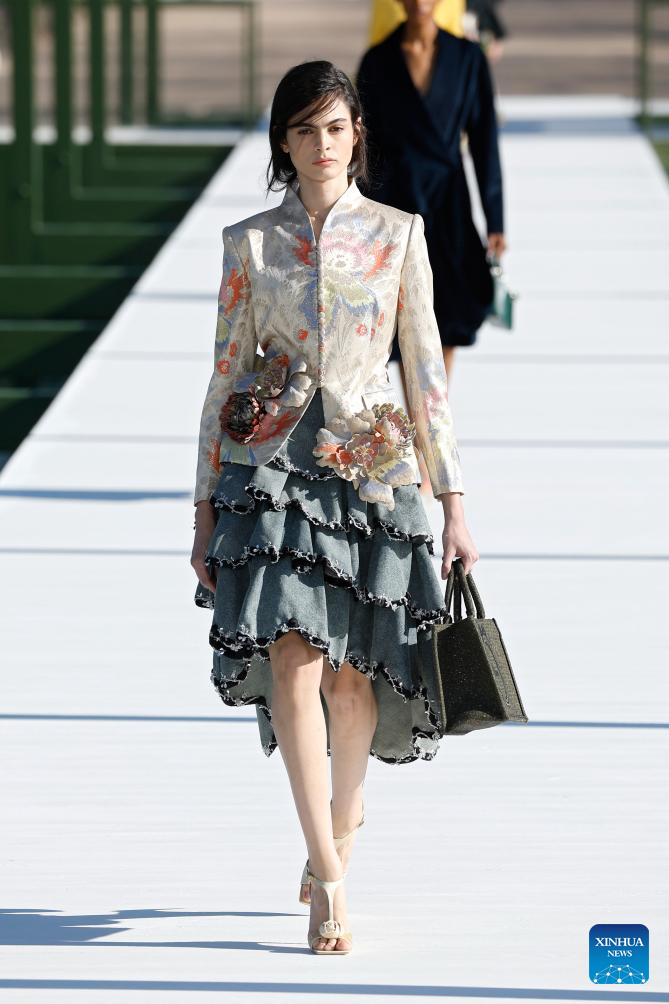 A model presents a creation from the ready-to-wear Fall/Winter 2026-2027 collections by Christian Dior during the Paris Fashion Week, in Paris, France, on March 3, 2026. (MeetEurope/Handout via Xinhua)
