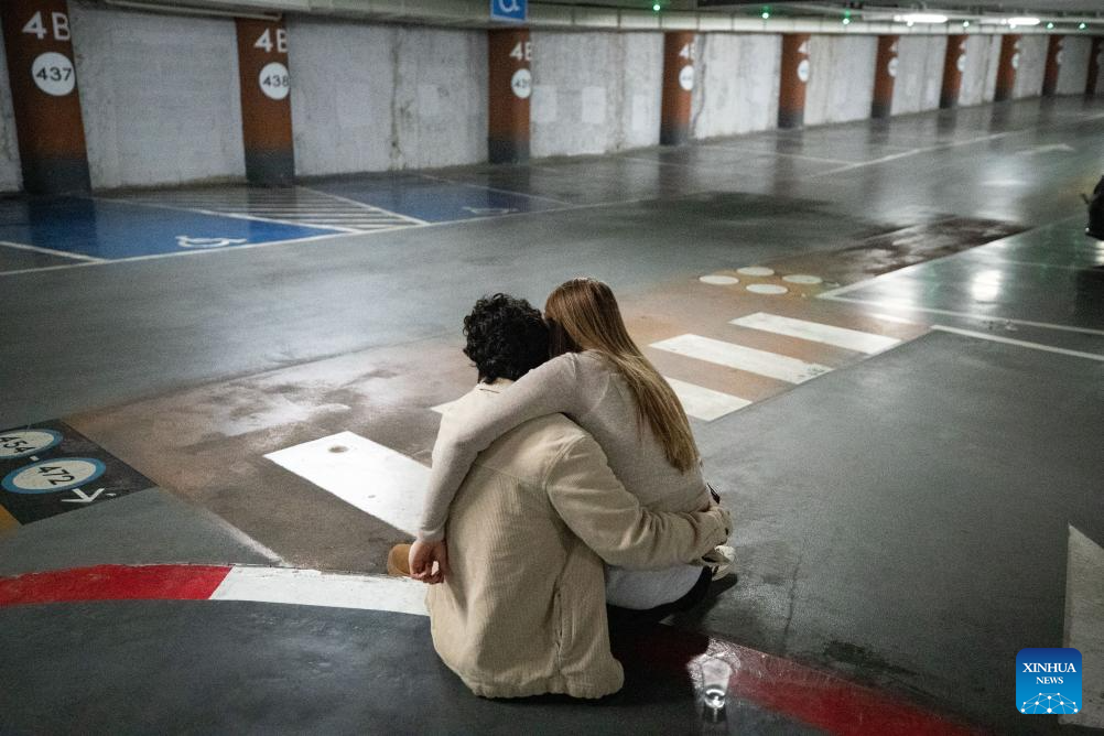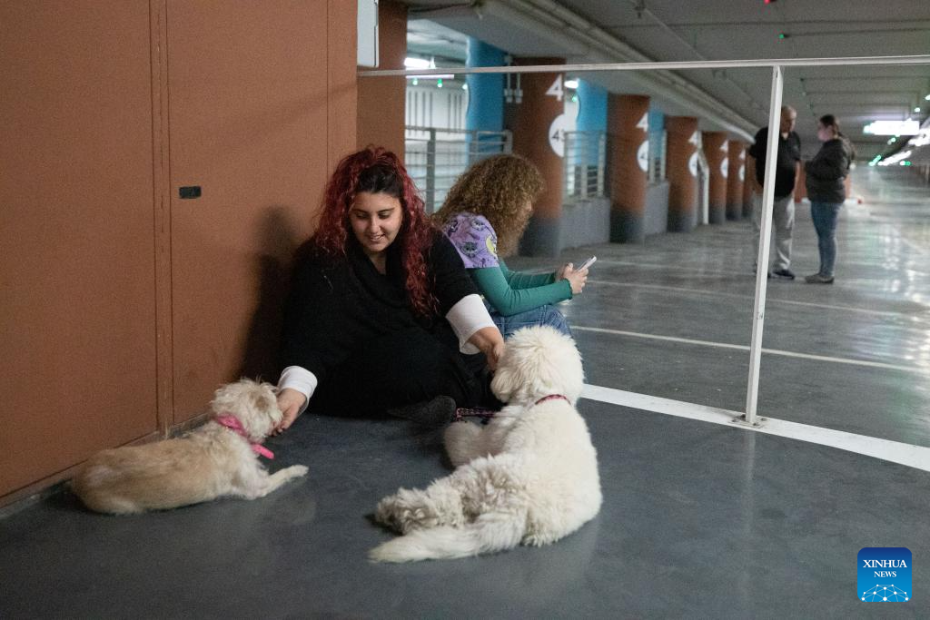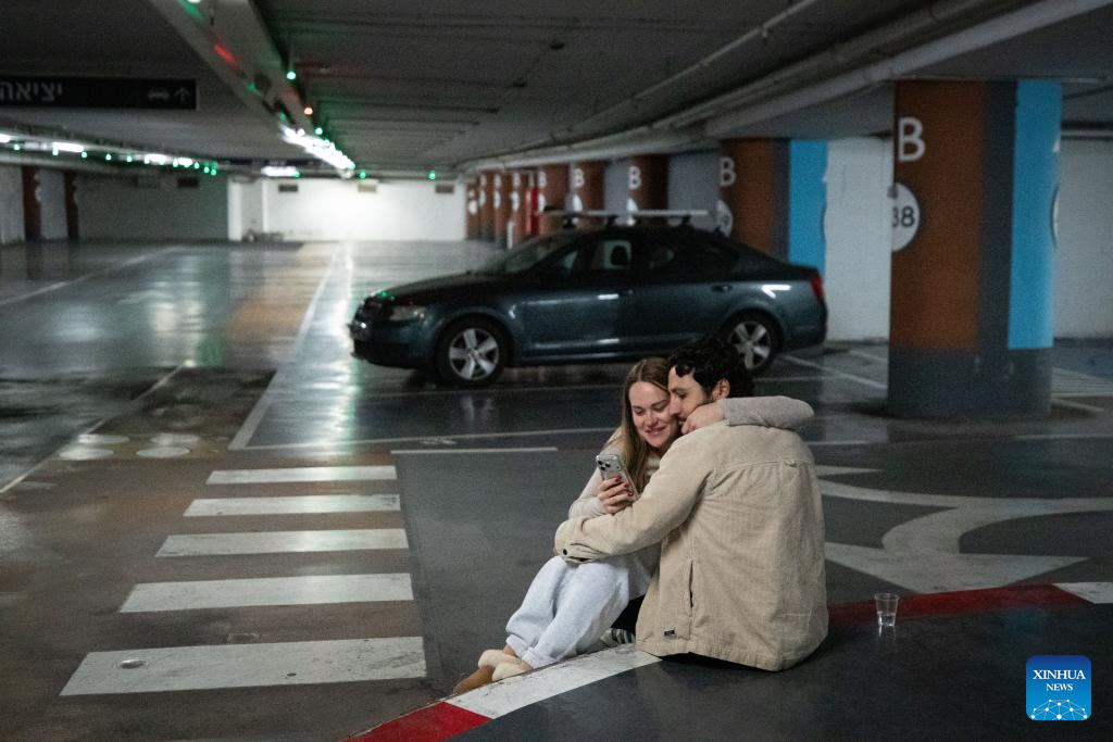People take shelter upon air raid sirens at an underground facility in downtown Tel Aviv on March 3, 2026. (Xinhua/Chen Junqing)