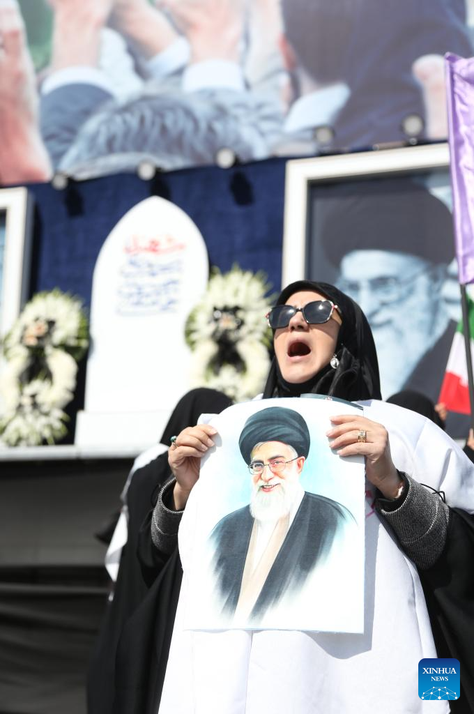 People protest against U.S. and Israeli military attacks on Iran in Tehran, Iran, on March 4, 2026. (Xinhua/Shadati)