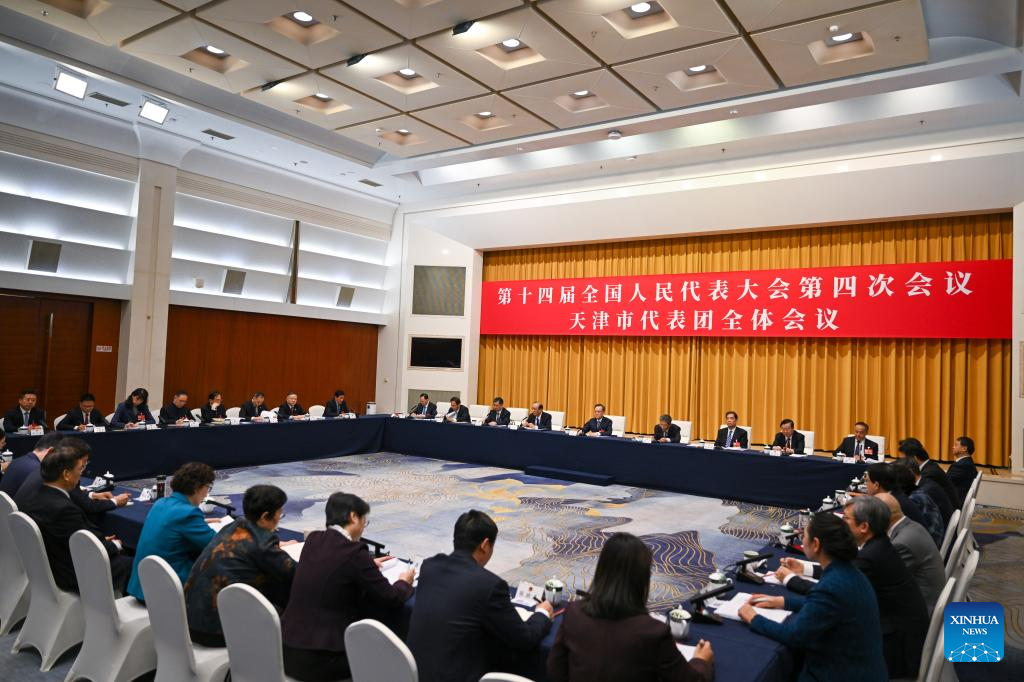 A group meeting of deputies from the delegation of Tianjin is held at the fourth session of the 14th National People's Congress (NPC) in Beijing, capital of China, March 6, 2026. (Xinhua/Cai Xiangxin)
