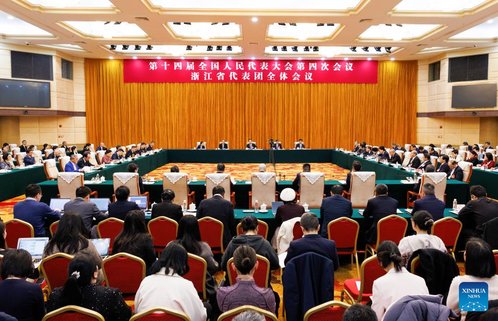 A group meeting of deputies from the delegation of Zhejiang Province is held at the fourth session of the 14th National People's Congress (NPC) in Beijing, capital of China, March 6, 2026. (Xinhua/Jin Liwang)