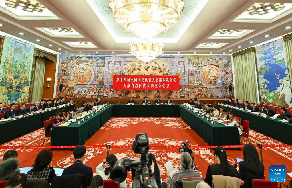 A group meeting of deputies from the delegation of Xizang Autonomous Region is held at the fourth session of the 14th National People's Congress (NPC) in Beijing, capital of China, March 6, 2026. (Xinhua/Cheng Tingting)