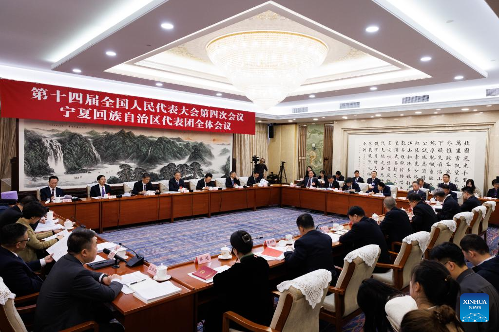 A group meeting of deputies from the delegation of Ningxia Hui Autonomous Region is held at the fourth session of the 14th National People's Congress (NPC) in Beijing, capital of China, March 6, 2026. (Xinhua/Jin Liwang)