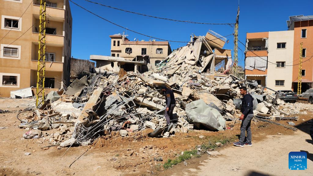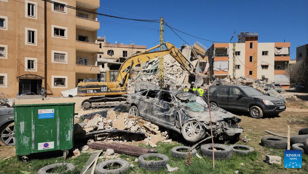People check the ruins of a building destroyed in an Israeli airstrike in Baalbek, eastern Lebanon on March 5, 2026. The death toll from Israeli attacks in Lebanon since early Monday has risen to 102, with 638 others wounded, Lebanon's authorities said Thursday. (Photo by Taher Abu Hamdan/Xinhua)