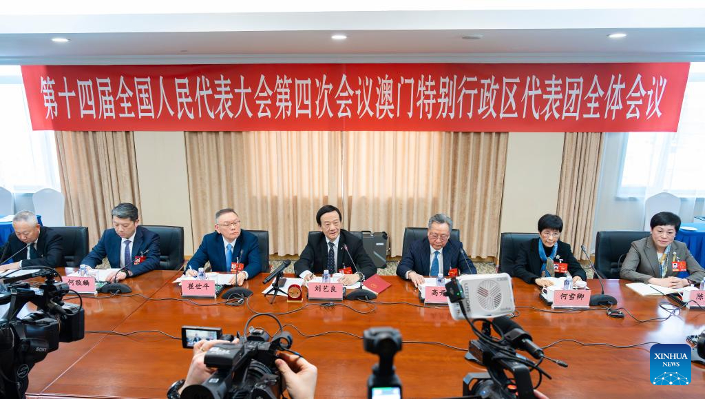 A group meeting of deputies from the delegation of the Macao Special Administrative Region is held at the fourth session of the 14th National People's Congress (NPC) in Beijing, capital of China, March 7, 2026. (Xinhua/Li Minggang