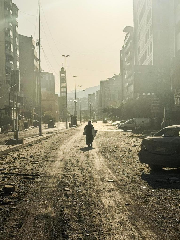 A pedestrian walks on a street full of debris after an Israeli airstrike in Beirut's southern suburbs, Lebanon, March 6, 2026. Dozens of Israeli airstrikes targeted areas across Lebanon overnight and early Friday, striking Beirut's southern suburbs, southern Lebanon and the Bekaa Valley amid escalating military tensions. (Photo by Bilal Jawich/Xinhua)