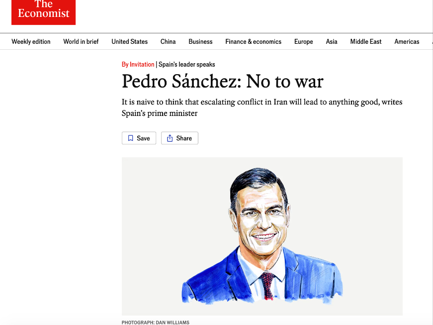 It is naive to believe that the ongoing U.S.-Israeli strikes against Iran will lead to anything good, Spanish Prime Minister Pedro Sanchez wrote in an op-ed for The Economist on Friday.