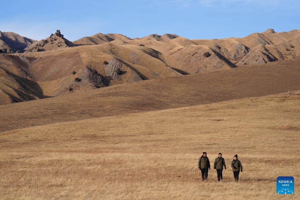 Female rangers walk back to the Qingyanggou protection station in the Qinghai section of Qilian Mountains National Park, in Qilian County, northwest China's Qinghai Province, March 6, 2026. (Xinhua/Zhang Long)
