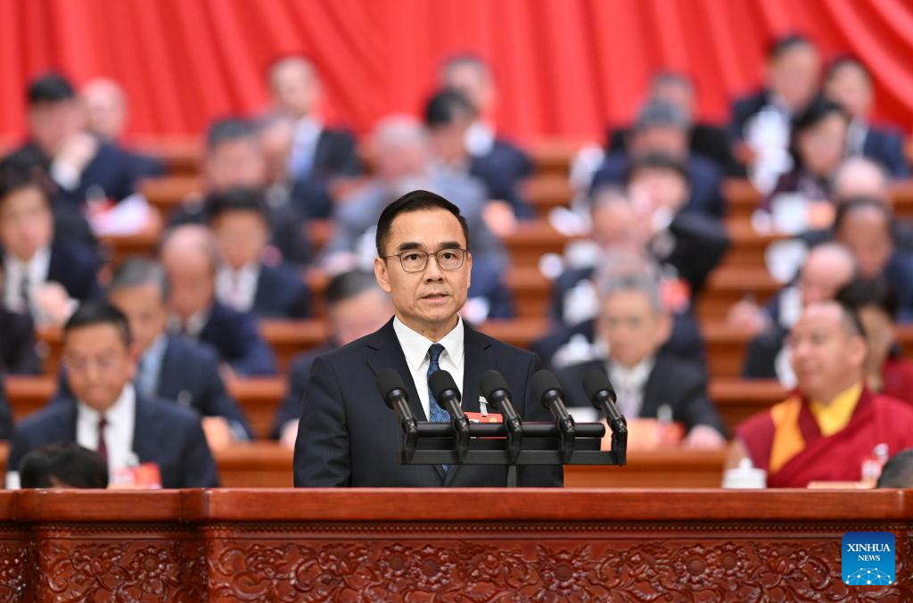 Ho Ion Sang, a member of the 14th National Committee of the Chinese People's Political Consultative Conference (CPPCC), speaks at the third plenary meeting of the fourth session of the 14th CPPCC National Committee at the Great Hall of the People in Beijing, capital of China, March 8, 2026. (Xinhua/Yue Yuewei)