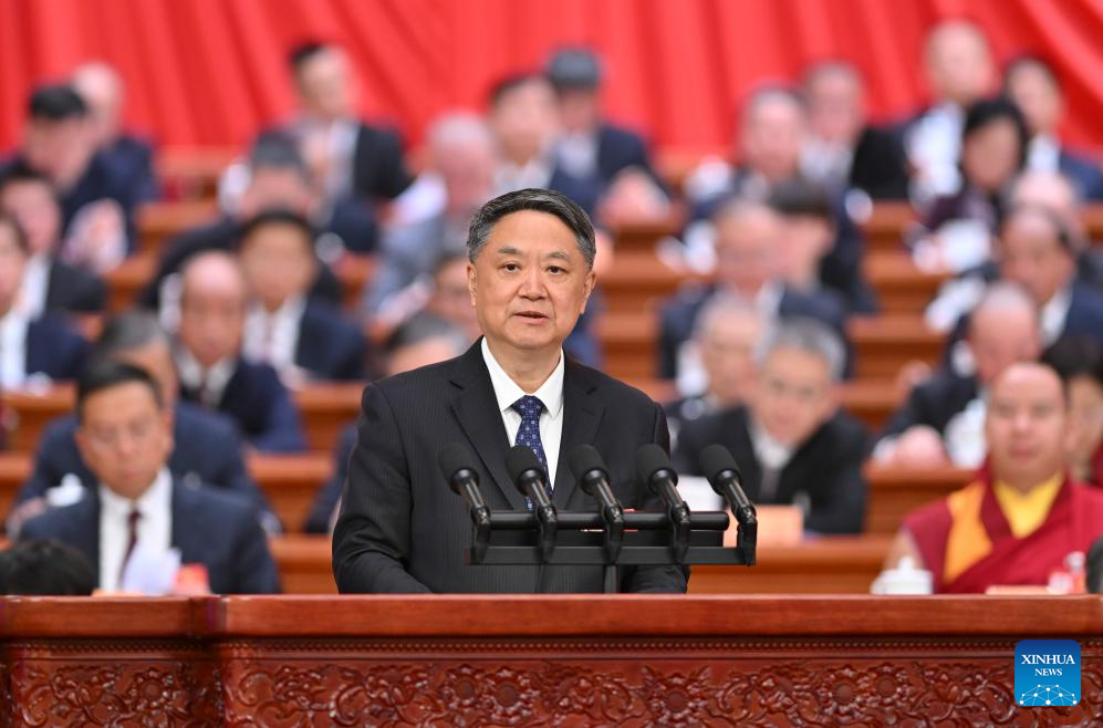 Wang Jinnan, a member of the 14th National Committee of the Chinese People's Political Consultative Conference (CPPCC), speaks on behalf of the Central Committee of the Chinese Peasants and Workers Democratic Party at the third plenary meeting of the fourth session of the 14th CPPCC National Committee at the Great Hall of the People in Beijing, capital of China, March 8, 2026. (Xinhua/Zhang Ling)