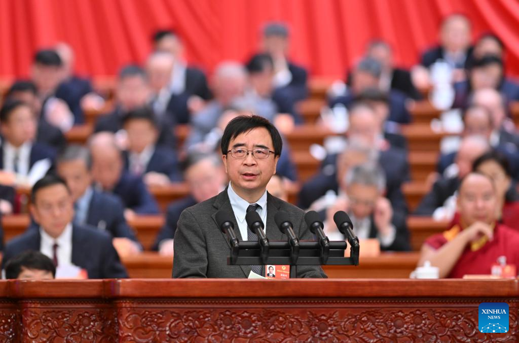 Yang Mingjie, a member of the 14th National Committee of the Chinese People's Political Consultative Conference (CPPCC), speaks at the third plenary meeting of the fourth session of the 14th CPPCC National Committee at the Great Hall of the People in Beijing, capital of China, March 8, 2026. (Xinhua/Yue Yuewei)