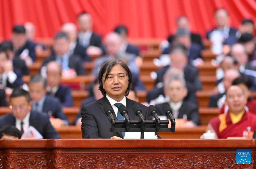 Wen Shugang, a member of the 14th National Committee of the Chinese People's Political Consultative Conference (CPPCC), speaks at the third plenary meeting of the fourth session of the 14th CPPCC National Committee at the Great Hall of the People in Beijing, capital of China, March 8, 2026. (Xinhua/Zhang Ling)