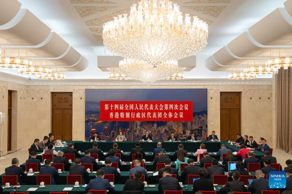 A group meeting of deputies from the delegation of Hong Kong Special Administrative Region is held at the fourth session of the 14th National People's Congress (NPC) in Beijing, capital of China, March 8, 2026. (Xinhua/Li Minggang)