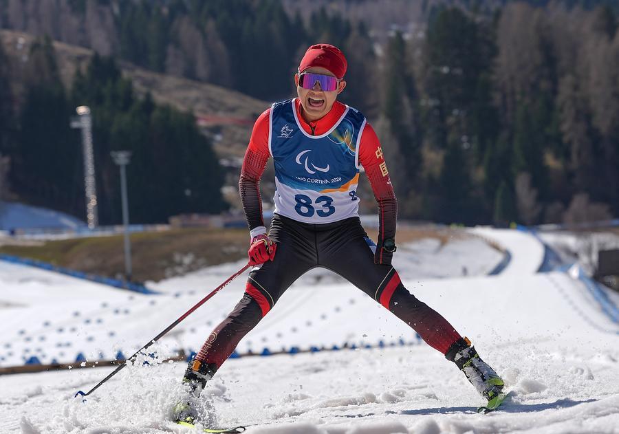 TESERO, Italy, March 8 (Xinhua) -- Cai Jiayun likes to describe himself as "just an ordinary person," but on Saturday the 25-year-old Chinese biathlete delivered an extraordinary performance, winning China's first gold medal at the Milan-Cortina Paralympic Winter Games.