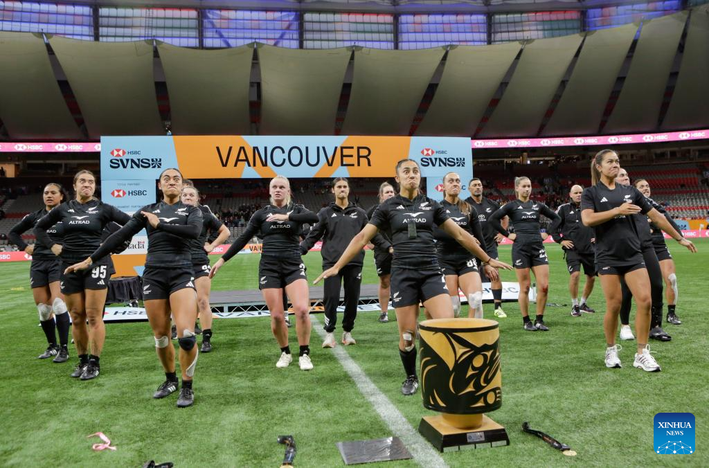 Team New Zealand performs a haka after defeating Australia in the Women's Cup Final match between Australia and New Zealand at 2026 World Rugby Sevens Series in Vancouver, Canada, on March 8, 2026. (Photo by Liang Sen/Xinhua)