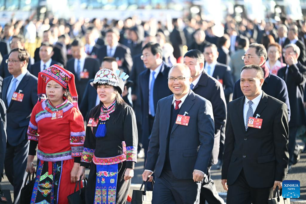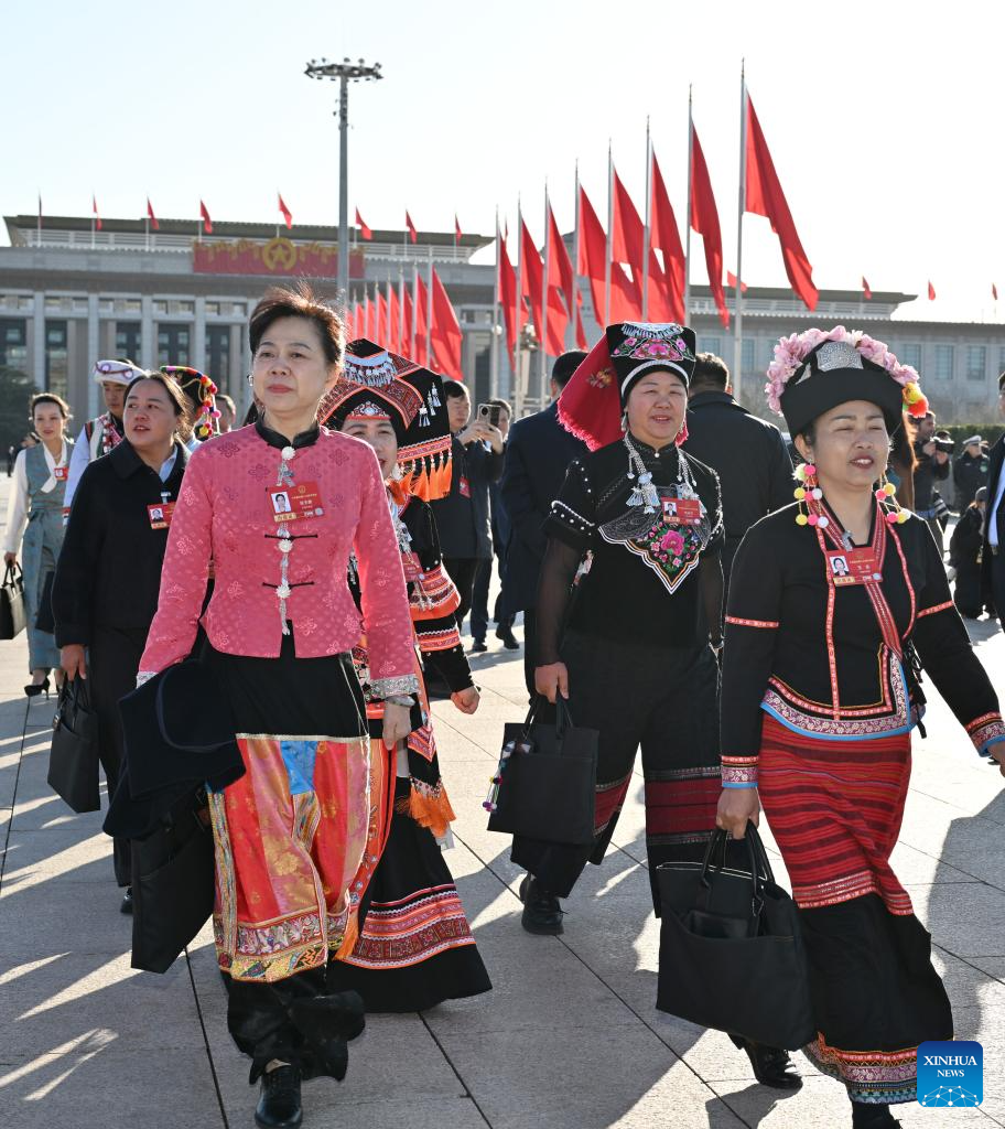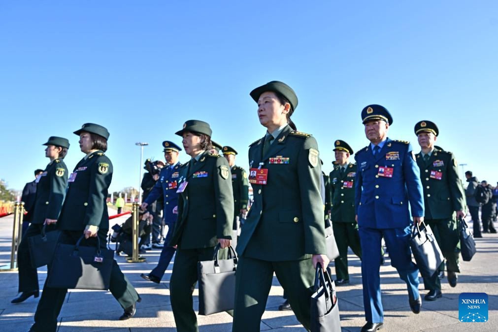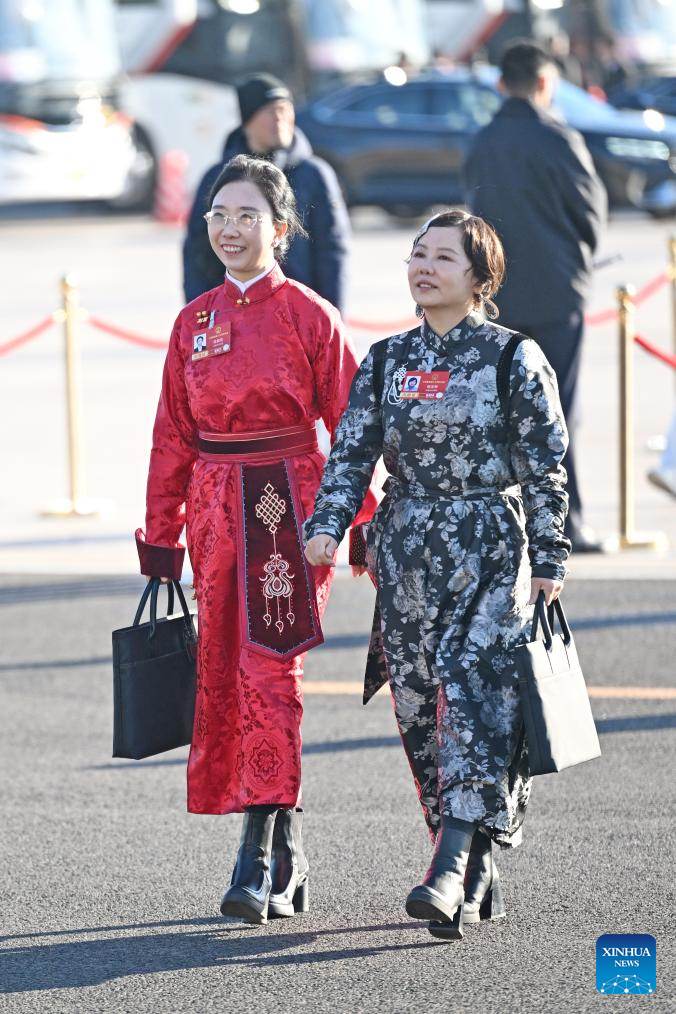 Deputies to the 14th National People's Congress (NPC) walk towards the Great Hall of the People for the second plenary meeting of the fourth session of the 14th NPC in Beijing, capital of China, March 9, 2026. (Xinhua/Chen Yichen)