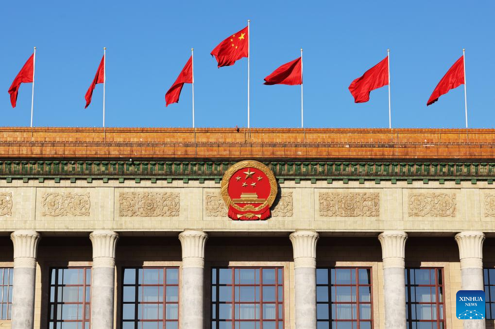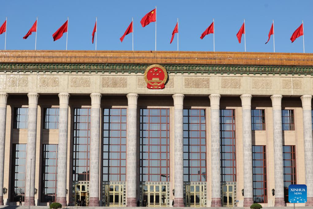 This photo taken on March 9, 2026 shows the Great Hall of the People ahead of the second plenary meeting of the fourth session of the 14th National People's Congress (NPC) in Beijing, capital of China. (Xinhua/Jin Liwang)