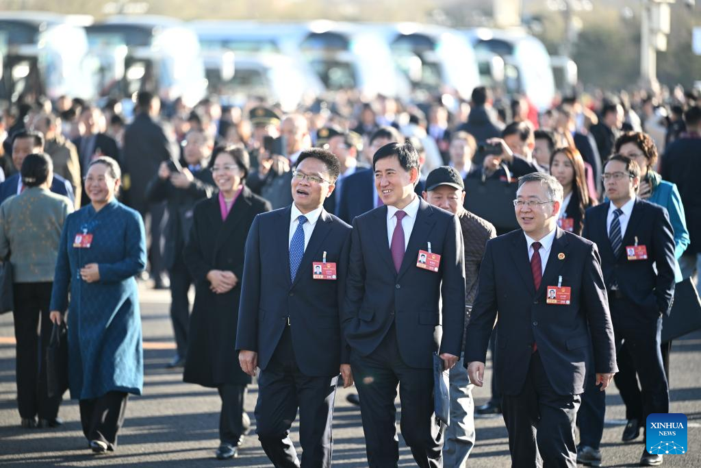 Deputies to the 14th National People's Congress (NPC) walk towards the Great Hall of the People for the second plenary meeting of the fourth session of the 14th NPC in Beijing, capital of China, March 9, 2026. (Xinhua/Chen Yehua)