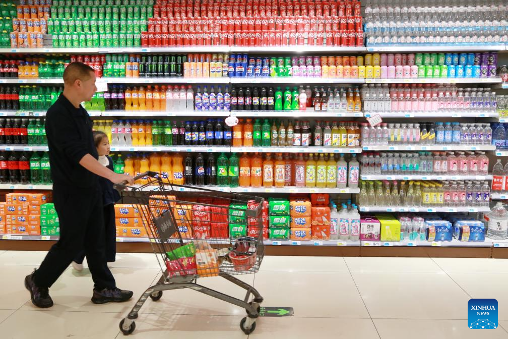 Customers select goods at a supermarket in Mengzi, southwest China's Yunnan Province, on March 9, 2026. China's consumer price index (CPI), a main gauge of inflation, rose 1.3 percent year on year last month, driven by the effects of the Spring Festival holiday, official data showed on Monday. The core CPI, which excludes food and energy prices, increased 1.8 percent year on year, according to data released by the National Bureau of Statistics (NBS). On a month-on-month basis, CPI went up 1 percent in February from the 0.2-percent gain in the previous month, the highest in nearly two years, the data revealed. (Photo by Xue Yingying/Xinhua)