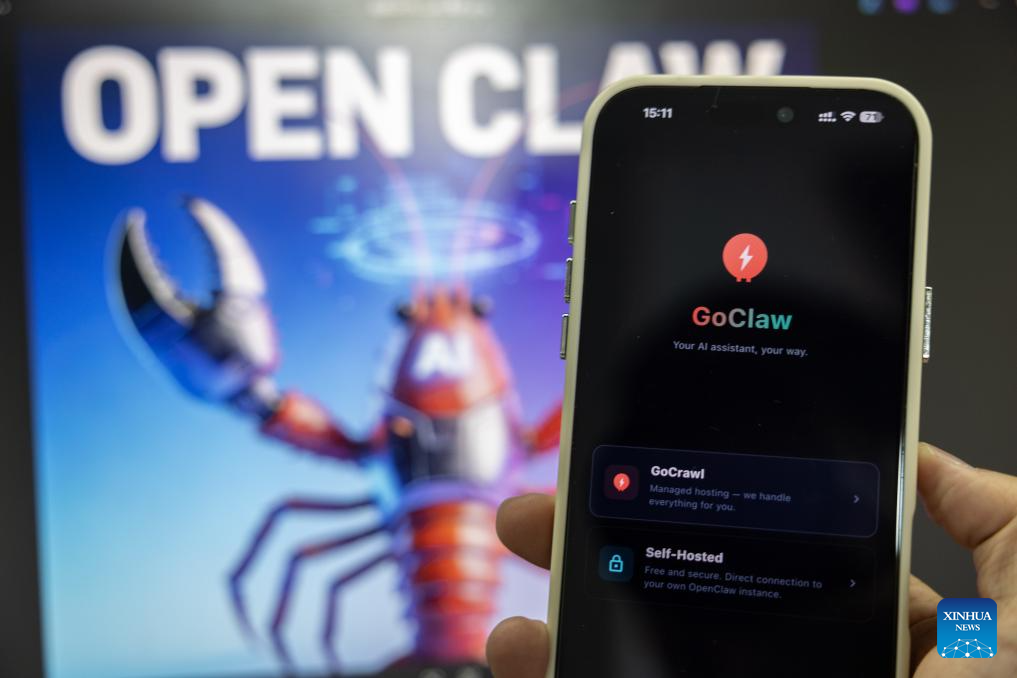 This photo taken on March 11, 2026 shows the screen of a mobile phone running the open-source AI agent OpenClaw at Wuxing District of Huzhou City, east China's Zhejiang Province. "Raising lobster" and one-person companies (OPCs), which have sparked heated discussions in China's AI community and among the public, are also hot topics at the country's ongoing "two sessions" this year. The term "raising lobster" originated from the open-source AI agent OpenClaw, which uses a red lobster as its icon. It has since become a buzzword, adopted by Chinese users to describe the process of setting up and training this smart assistant. (Photo by Yi Fan/Xinhua)