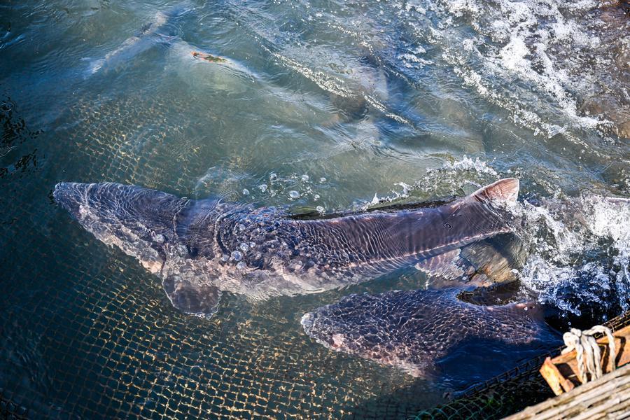 This photo taken on March 9, 2026 shows the Yangtze sturgeons at the Dazhou base of the fisheries research institute of Wanzhou District, southwest China's Chongqing. (Xinhua/Wang Quanchao)Staff members check the growth of the fish at the Dazhou base of the fisheries research institute of Wanzhou District, southwest China's Chongqing, March 9, 2026. (Xinhua/Wang Quanchao)This photo taken on March 9, 2026 shows a Yangtze sturgeon at the Dazhou base of the fisheries research institute of Wanzhou District, southwest China's Chongqing. (Xinhua/Wang Quanchao)An aerial drone photo taken on March 9, 2026 shows the Dazhou base of the fisheries research institute of Wanzhou District, southwest China's Chongqing. (Xinhua/Wang Quanchao)An aerial drone photo taken on March 9, 2026 shows staff members feeding the fish at the Dazhou base of the fisheries research institute of Wanzhou District, southwest China's Chongqing. (Xinhua/Wang Quanchao)A staff member feeds the fish at the Dazhou base of the fisheries research institute of Wanzhou District, southwest China's Chongqing, March 9, 2026. (Xinhua/Wang Quanchao)An aerial drone photo taken on March 9, 2026 shows the Dazhou base of the fisheries research institute of Wanzhou District, southwest China's Chongqing. (Xinhua/Wang Quanchao)■