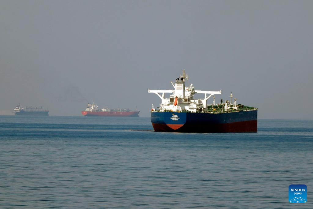 Ships are pictured in the Gulf of Suez, Egypt, on March 11, 2026. (Xinhua/Ahmed Gomaa)