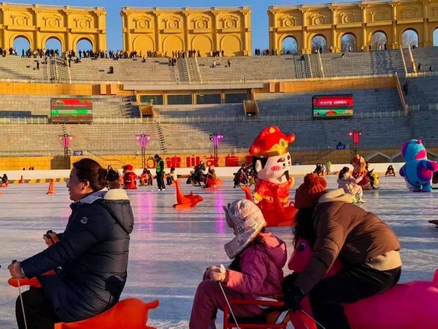 Wang Wentao, a tourist from Chengdu, capital of southwest China's Sichuan Province, accompanied by his nine-year-old daughter, described the experience in the park as extraordinary. "It rarely snows in my home city, and you certainly won't find an outdoor ice rink with sunset views. My daughter was delighted and the scenery was amazing. It's well worth the trip," he said.