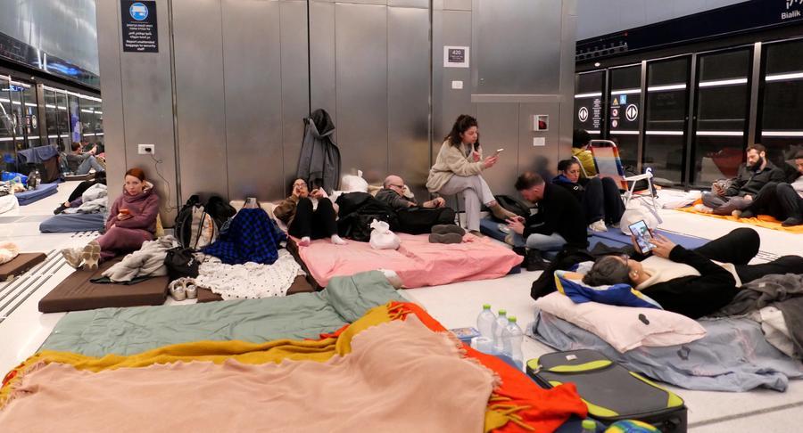 TEL AVIV, March 12 (Xinhua) -- A wave of Iranian strikes forced many Israelis to spend Wednesday night in shelters, with some crowding into subway stations.