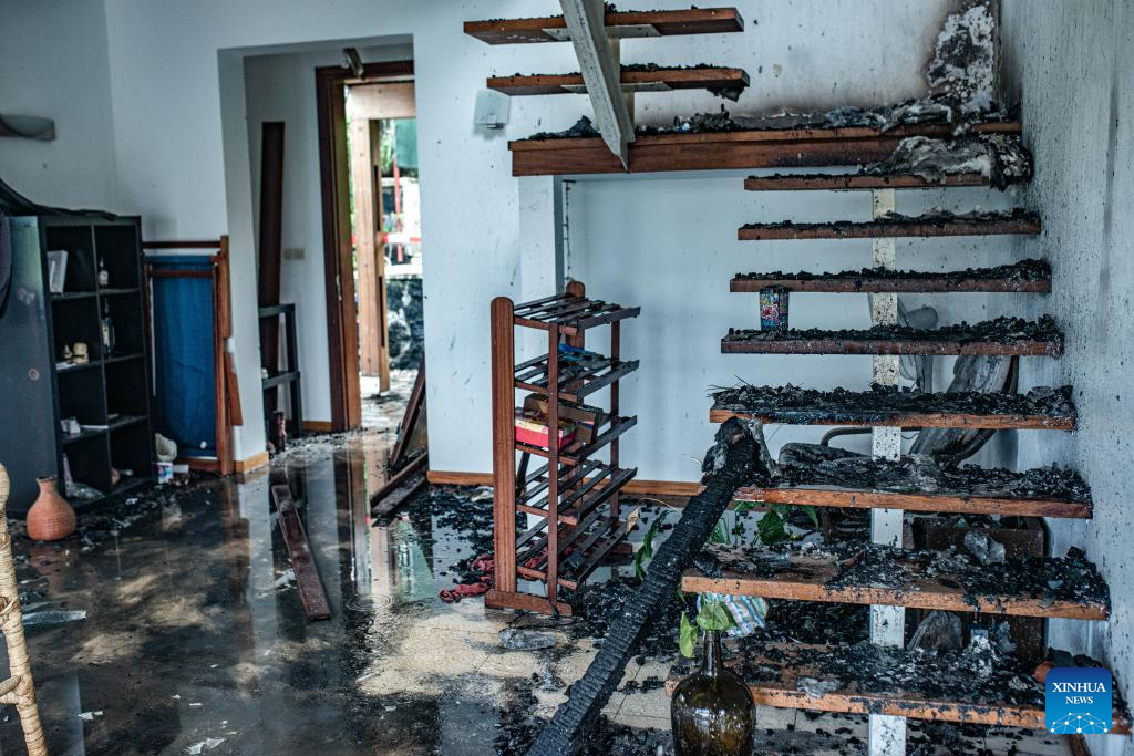 This photo taken on March 11, 2026, shows damages inside a building after a drone attack in Goma, eastern Democratic Republic of the Congo (DRC). Explosions were heard on Wednesday morning. The March 23 Movement (M23) rebel group attributed a drone strike to the Congolese government's military forces. According to a provisional toll released by M23, three people were killed, including a French national working for the United Nations Children's Fund. (Str/Xinhua)