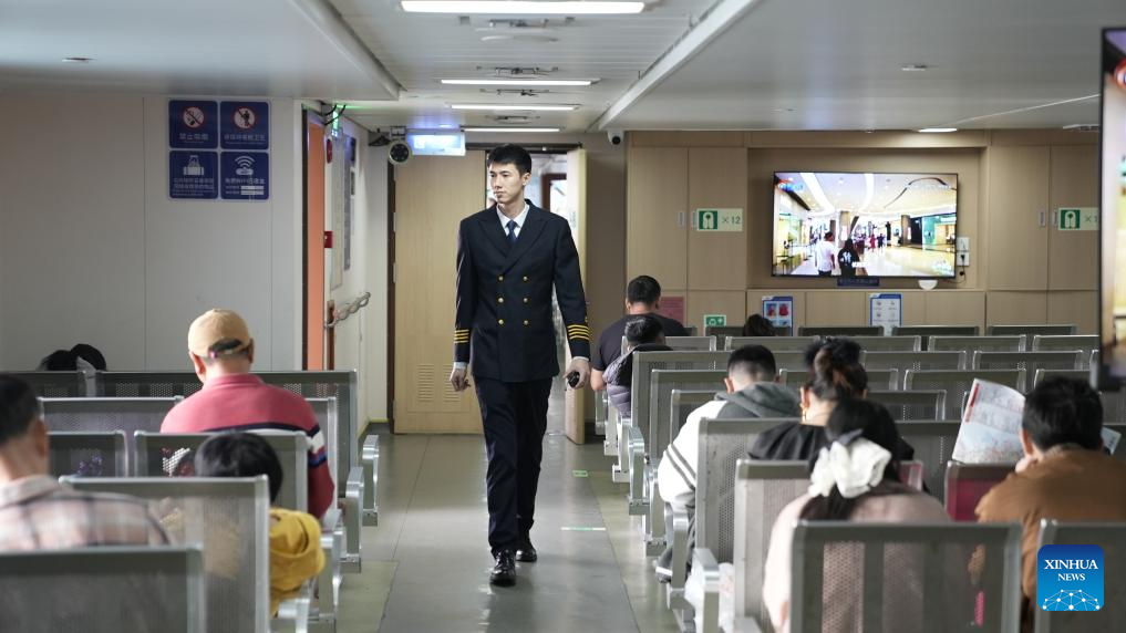 HAIKOU, March 13 (Xinhua) -- In a roll-on/roll-off (ro-ro) passenger ferry operating across the Qiongzhou Strait in southern China, Captain Huang Wanli carries out meticulous inspections of the vessel's maintenance status to ensure safe and reliable operations.
