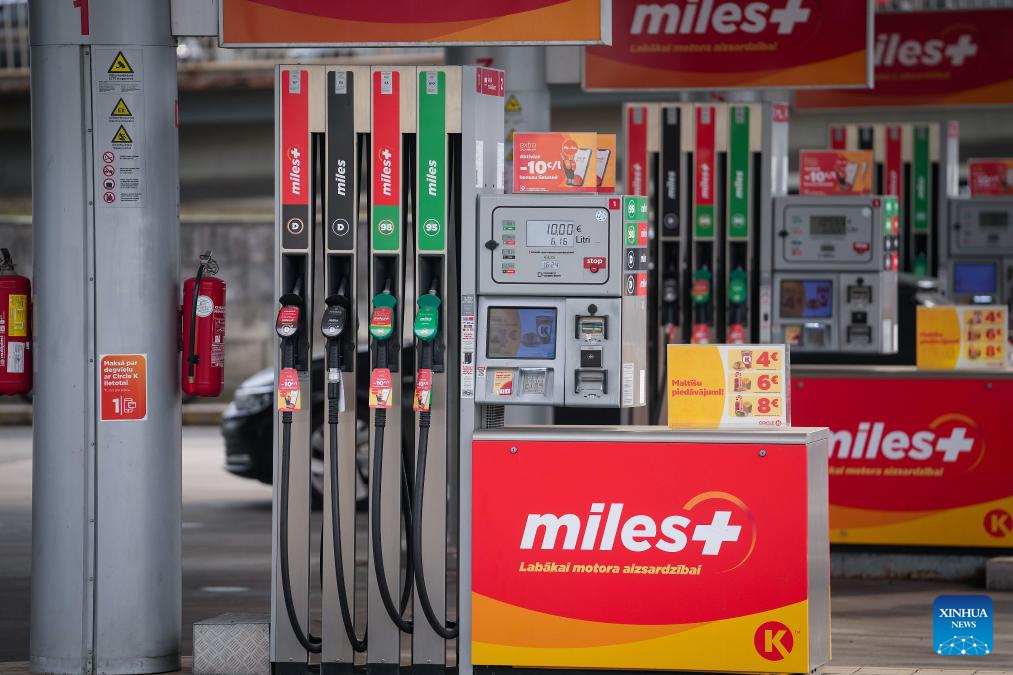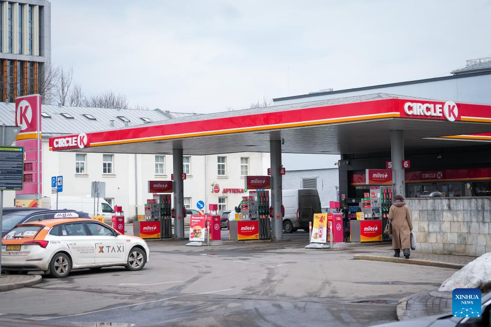 Photo taken on March 12, 2026, shows a fuel station in Riga, Latvia. Fuel prices in Latvia have risen recently as the Middle East conflict disrupted global oil supplies. (Photo by Edijs Palens/Xinhua)