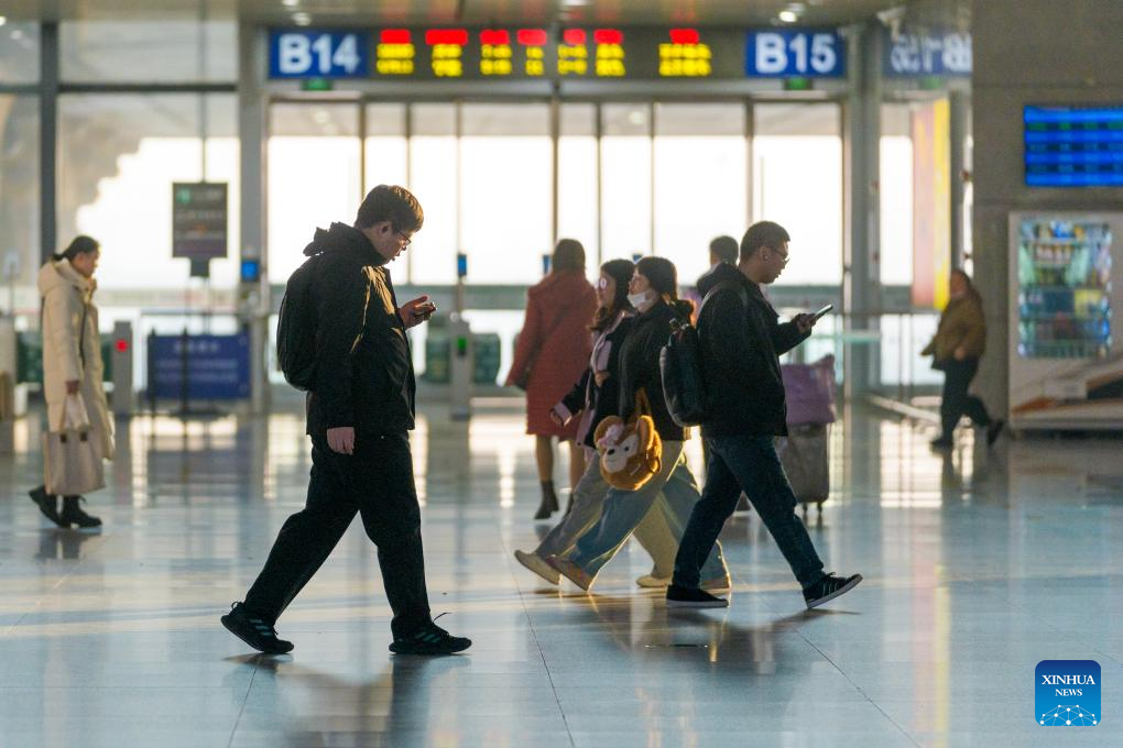 Passengers enter the waiting hall of Nanjing South Railway Station in Nanjing, east China's Jiangsu Province, March 13, 2026. The total number of inter-regional passenger trips across China during the 40-day Spring Festival travel rush, which concluded on Friday, is estimated to reach a record 9.4 billion, according to data from the Ministry of Transport. (Photo by Du Yi/Xinhua)