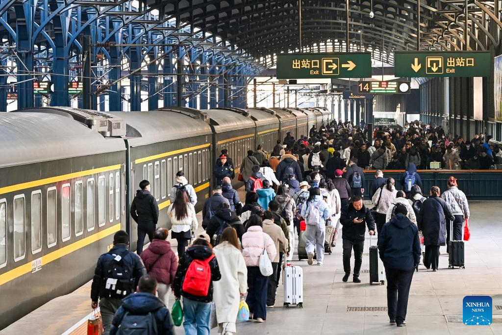 Passengers are pictured at a platform of Nanjing Railway Station in Nanjing, east China's Jiangsu Province, March 13, 2026. The 2026 Spring Festival travel rush comes to an end on Friday. (Photo by Yang Suping/Xinhua)