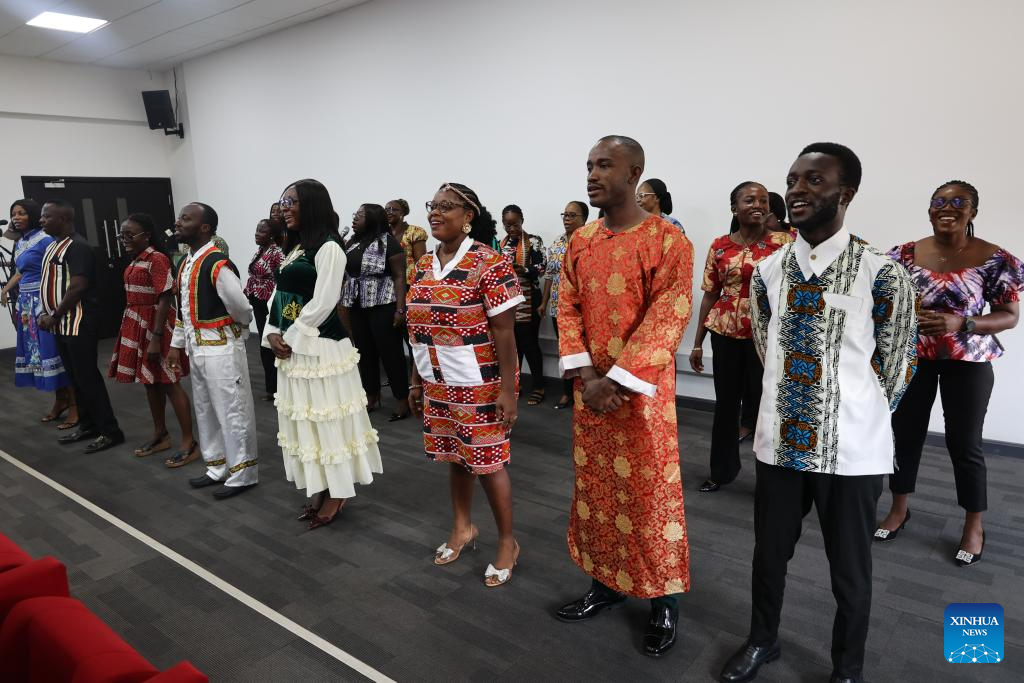 Ghanaian graduating students from a Chinese language proficiency training program sing a Chinese song at the graduation ceremony in Accra, Ghana, March 12, 2026. At least 81 Ghanaian public sector workers from the Ministry of Foreign Affairs and other ministries, departments and agencies graduated from an 11-week Chinese language proficiency training program on Thursday. (Photo by Seth/Xinhua)